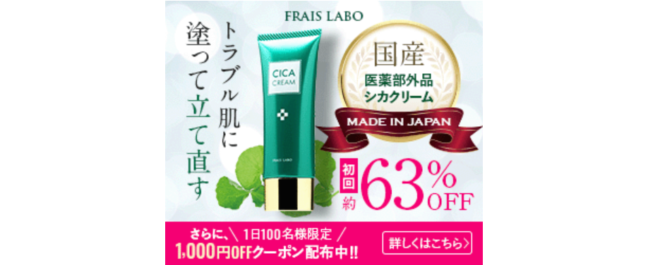 フレイスラボ シカクリームは、韓国で「肌再生クリーム」として人気の話題のシカ(CICA)成分を配合した日本製の医薬部外品です。